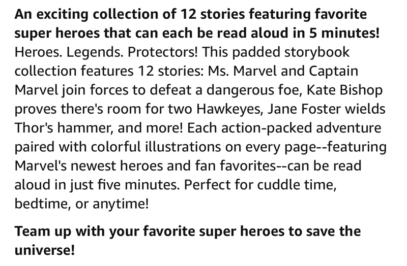 Complete with beautiful, full color illustrations on every page and a durable padded cover, each empowering story is perfectly timed to be read aloud in 5 minutes. Great for storytime, bedtime
